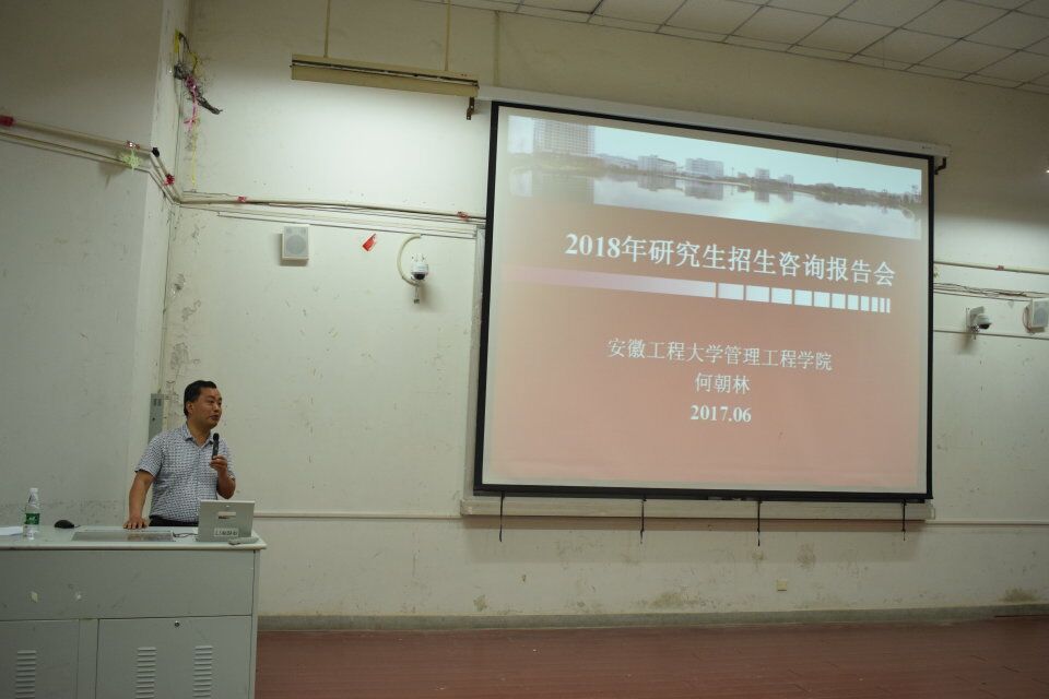 何朝林首先作了2018年研究生招生咨询报告,他从考研的时间安排开始,指导同学们在考研的过程中把握不同时间节点,深入分析了当下的考研形势,鼓励同学们积极考研,努力拼搏。随后介绍了学院“管理科学与工程”一级硕士点和“产业经济学”二级硕士点的师资力量,以幽默的语言、贴切的对比的方式引导同学们在报考外校的同时,积极报考我校研究生。