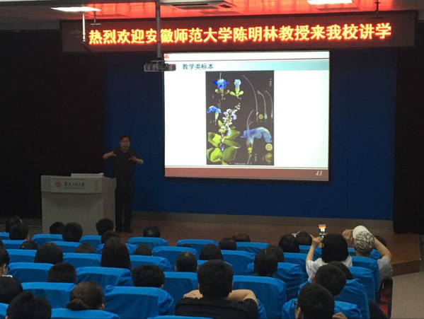 6月15日,应教务处和生物与化学工程学院邀请,安徽师范大学生命科学院生物科学专业系主任陈明林教授来到生化学院作了“植物标本制作”专题报告。报告会由生物与化学工程学院院长陶玉贵教授主持,生物制药及生物工程专业师生参加了报告会。