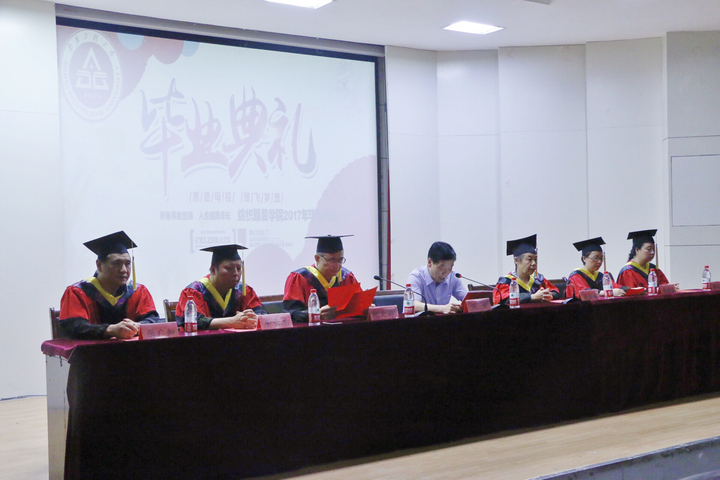 全体起立奏唱国歌后,院长毕松梅宣读了授予2017届本科生学士学位的决定,院党委书记纪天新宣读了2017年安徽省品学兼优毕业生以及2017年校优秀毕业生的表彰文件。