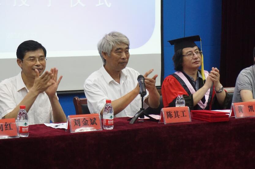 陈其工代表学校党政对毕业生深情寄语,对全体毕业生顺利完成学业、即将踏上崭新征程表示衷心的祝贺,并向他们的父母老师表示深深的敬意。在离别之际,陈其工对即将步入社会的全体毕业生悉心叮嘱:要修养品德,用优秀的人格品质创造艺术人生。在竞争激烈的职场中学会团结合作,在平平淡淡的生活中学会感恩图报,在繁华浮躁的名利前保持求真求善的赤子之心,以山一样的宽厚德行和水一样的灵动智慧创造丰富多彩、硕果繁茂的艺术人生;志存高远,以优秀的艺术作品回馈社会。艺术来源于生活,也只有在反映生活、回馈生活中才能彰显无穷的魅力和无尽的价值。因此同学们要肩负起时代赋予的历史使命,将“个人梦”与中华民族伟大复兴的“中国梦”紧密联系在一起,在不同的艺术领域创造出有益于社会、无愧于时代的艺术作品;追求卓越,以崇高的艺术追求描绘美丽的新世界。希望同学们面对喧嚣浮躁的社会,仍能以平和心态正确面对,继续秉承“尚德敏学”的校训精神,脚踏实地,坚持创新,追求卓越,站在时代的潮头。最后,他希望同学们走出校门后,常回母校,关注母校的建设和发展,同时也祝福同学们在人生道路上健康幸福。