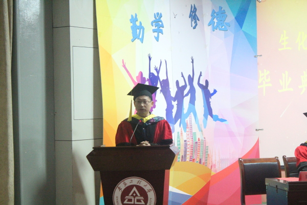 学院教师代表唐海老师发言时讲到,“无论你们走到哪里,安工程、生化院都会不时地出现在你们的梦境里,闲谈中,或各种吐槽中。因为我相信,你们的大脑里、血液中已经留下了安工程的深刻的烙印。”他鼓励生化学子能一直乘风破浪,勇往直前,“母校会一直牵挂着同学们,欢迎常回家看看。”