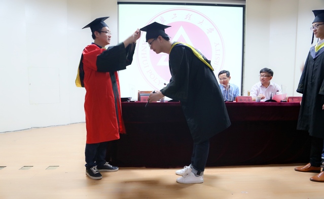 典礼在庄严的《国歌》声中开始。院长陆峰宣读了授予2017届本科毕业生学士学位的决定,并逐一为毕业生代表颁发证书、扶正流苏、合影留念。
