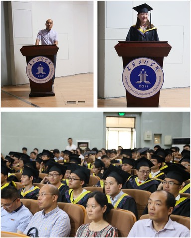 教师代表索小永为毕业生寄语, 表达了老师对同学们的期望与祝福,希望同学们在离开校园以后的日子中,还要不断读书,提升自我,攀登上自己人生事业的高峰!“学霸宿舍”寝室长给排水131班李荣代表2017届毕业生发言,她深情回忆了四年的大学生活,回忆了宿舍六人一起考研的点滴,李荣表示一定不忘老师们的谆谆嘱托和殷切期望,继续努力拼搏,以优异的成绩立足社会,回报母校。