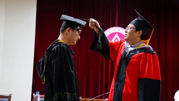 在《徽程的故事》声中,副院长汪军逐一为获得学位的同学扶正流苏并合影留念。2017届毕业生向学院赠送了纪念品,表达了对学院的不舍和热爱。
