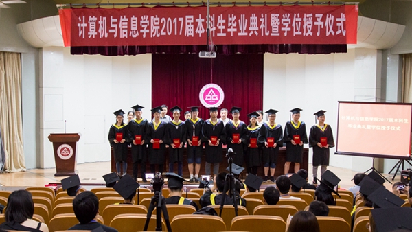 6月27日上午,计算机与信息学院在学术报告厅举办2017届本科生毕业典礼暨学位授予仪式。校长刘宁、学院党政负责人、教师代表、毕业班辅导员,2017届毕业生代表及部分毕业生家长出席了典礼。典礼由学院党委书记邬海量主持。