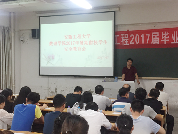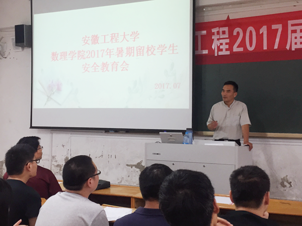 7月5日下午,数理学院于4教111室召开2017年暑期留校学生教育会。数理学院党委书记周毅仁、院长费为银、党委副书记水心宝、辅导员满志宏以及留校考研、参加学科竞赛和社会实践的学生代表参加了会议。会议由辅导员李悦主持。