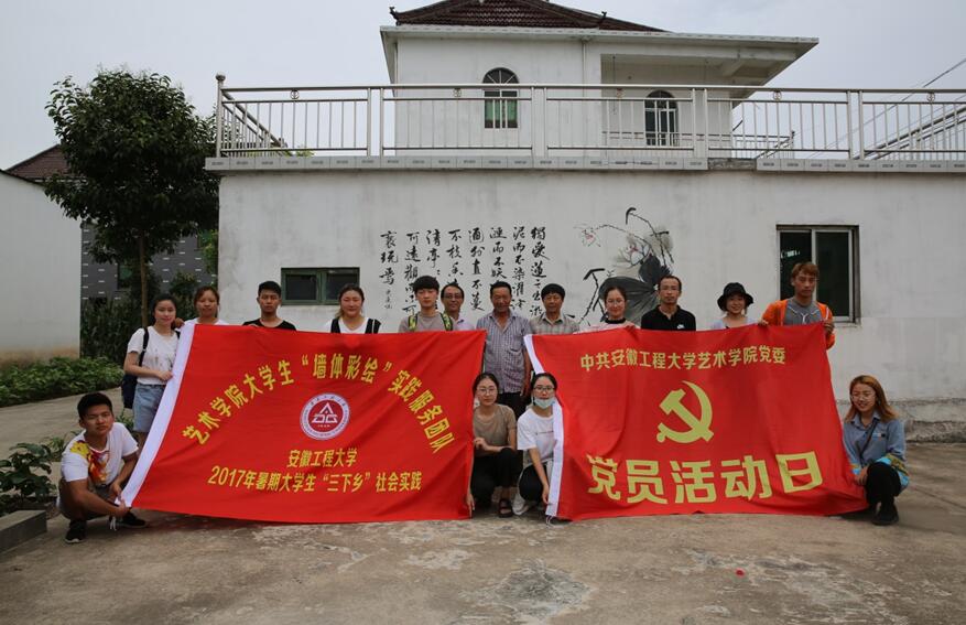为了深入推进“两学一做”学习教育常态化制度化,引导和帮助学院团员青年在社会实践中受教育、长才干、作贡献,以自身实际行动,培育和践行社会主义核心价值观,增强社会责任意识,迎接党的十九大胜利召开,7月8日至9日,艺术学院组织学生党员、学生骨干赴枞阳县老洲镇开展社会实践系列活动。活动主要包含“墙体彩绘”助力美丽乡村建设实践服务、学生党员“关爱留守儿童”实践团队等。