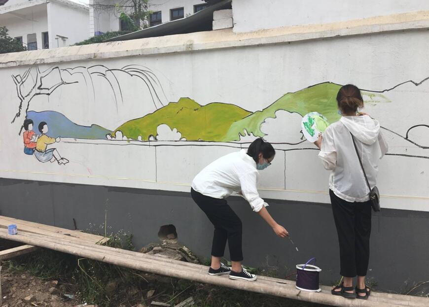 墙体彩绘,助力美丽乡村建设,不仅发挥了艺术专业学生所长,学以致用,而且展现了当代大学生党员风采,学生们以实际行动参与到美丽乡村建设中来,用实际行动争做合格共产党员。