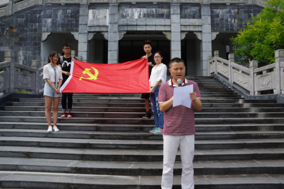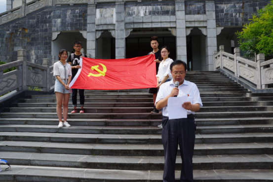 新四军史料陈列馆前,院党委副书记王辉主持了纪念仪式。全体党员奏唱国歌,拳拳爱国之情在陈列馆前响亮;在院党委委员、团委书记胡云的带领下,大家重温入党誓词,的铮铮的入党誓词在巍巍青山间回荡。随后,学院党委委员高建纲宣读了关于表彰2016年院级先进党组织和优秀党员的决定。学生代表徐姝说,她非常荣幸能够获得学院优秀学生党员称号,未来会以更大的热情投入到两学一做制度化、常态化的学习中,也会努力进行课业学习,争取考研成功。