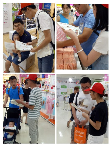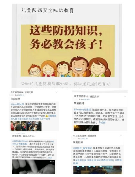 团队成员们深入各地的小区或者广场等人员密集的地方,向带着孩子们玩耍的家长们发放准备好的宣传材料,讲解活动的目的和意义。虽然刚一开始,家长们不太愿意配合填写问卷,但是志愿者们耐心和细致的讲解,渐渐得到了家长们的接受和配合,都积极参与到活动中来,甚至有的家长还提到自己的孩子曾经差点被拐的经历。为了便于向大家更详细的宣传防拐防骗知识,该团队还利用班级支部微博和微信推送了若干信息,点击阅读量达数百余次。