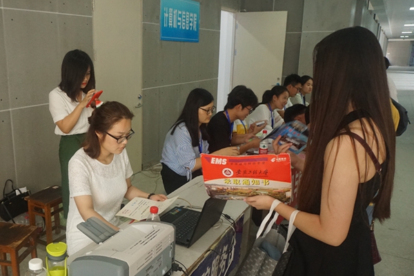 学生会的工作人员和志愿者们热情高涨的等待着新生的到来。