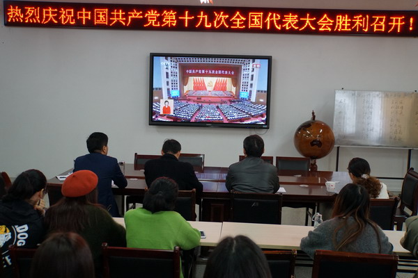 上午九点整,通过网络直播,学院中心组成员认真地收看了习近平总书记作的十九大报告,不时为习近平总书记的报告所打动和鼓舞,会议室里响起阵阵掌声。