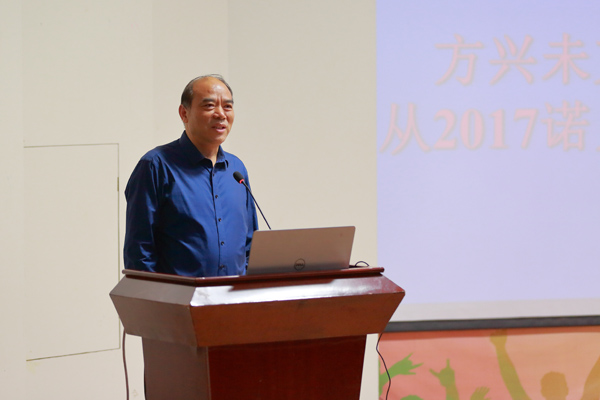 为深入推进“课堂新态”建设,营造更加浓郁的学习氛围, 10月22日下午,数理学院院长费为银在学校学术报告厅为学院师生作了题为“方兴未艾的行为金融——从2017年诺贝尔经济学奖谈起”的专题学术讲座,数理学院部分教师、学生代表300余人聆听了讲座。
