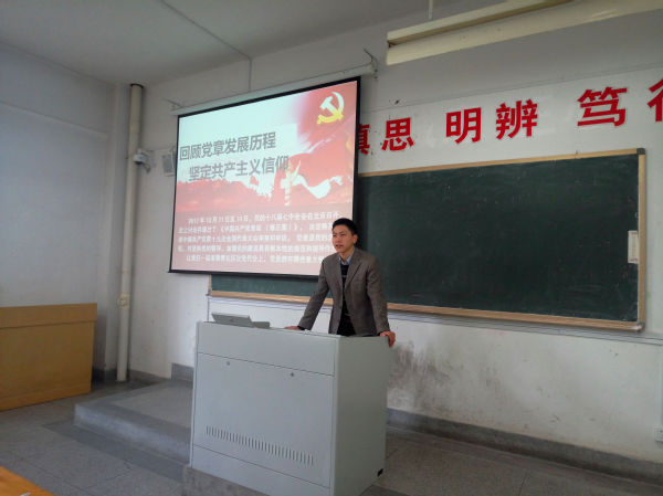 10月25日下午,外国语学院第十六期入党积极分子培训班班主任张君在4教206教室为培训班的同学们开展“回顾党章发展历程,坚定共产主义信仰”讲座。