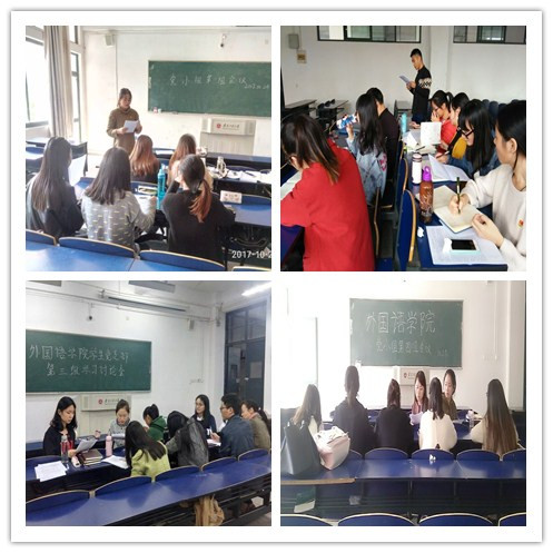 近日,外国语学院学生党支部各分党小组先后开展了以学习党的十九大精神为主题的学习交流会。