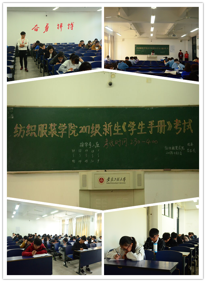 为帮助新生尽快熟悉校史校风和各项校级校规,养成良好的学习习惯和行为规范,11月1日下午,纺织服装学院举行了2017级新生《学生手册》知识竞赛,学院全体新生参加了比赛。