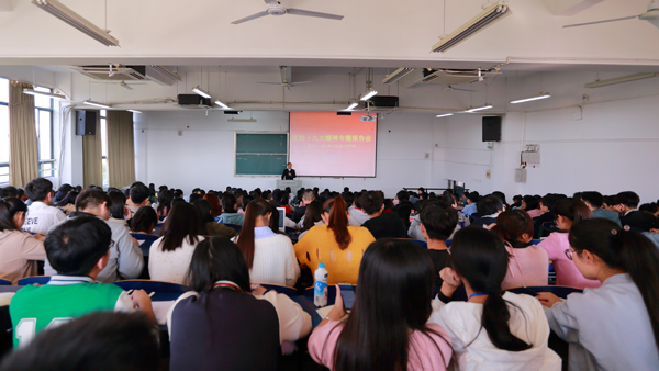 周毅仁在总结时表示,党的十九大胜利召开后,学院党委高度重视,根据学校党委的部署和要求,对如何学习宣传贯彻党的十九大精神作了精心安排。今天,徐东辉老师的报告全方位地解读了十九大报告,使全院师生对十九大报告的精髓有了更加深入的了解和掌握,为迅速掀起党的十九大精神学习热潮奠定了基础。他强调,学院广大师生要通过形式多样的方式加强党的十九大学习,并充分利用校园官网、微信等新媒体平台,加强对十九大精神学习宣传。他借习近平总书记瞻仰中共一大旧址南湖红船的讲话勉励全院师生要认真学习、不忘初心、牢记使命、永远奋斗。