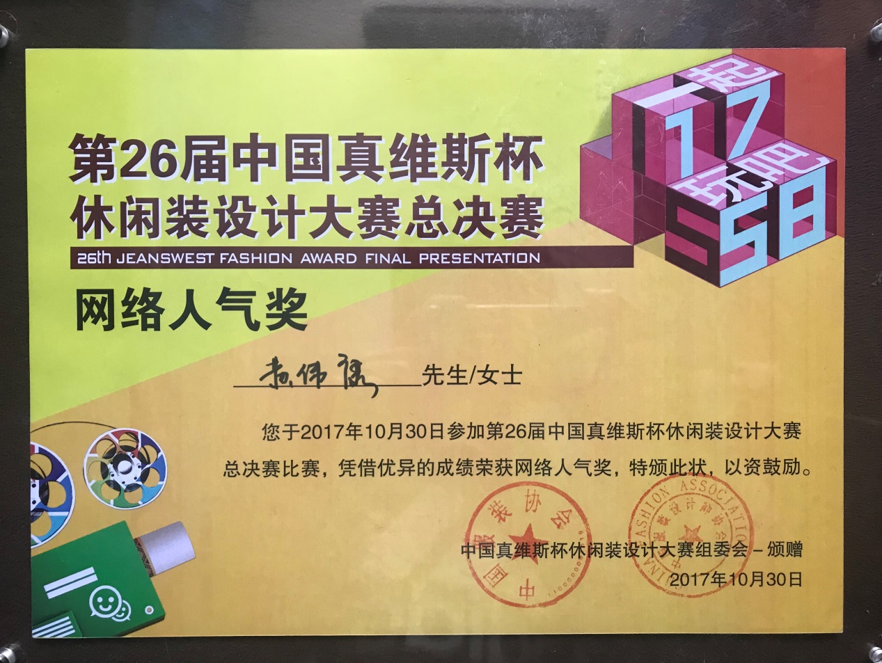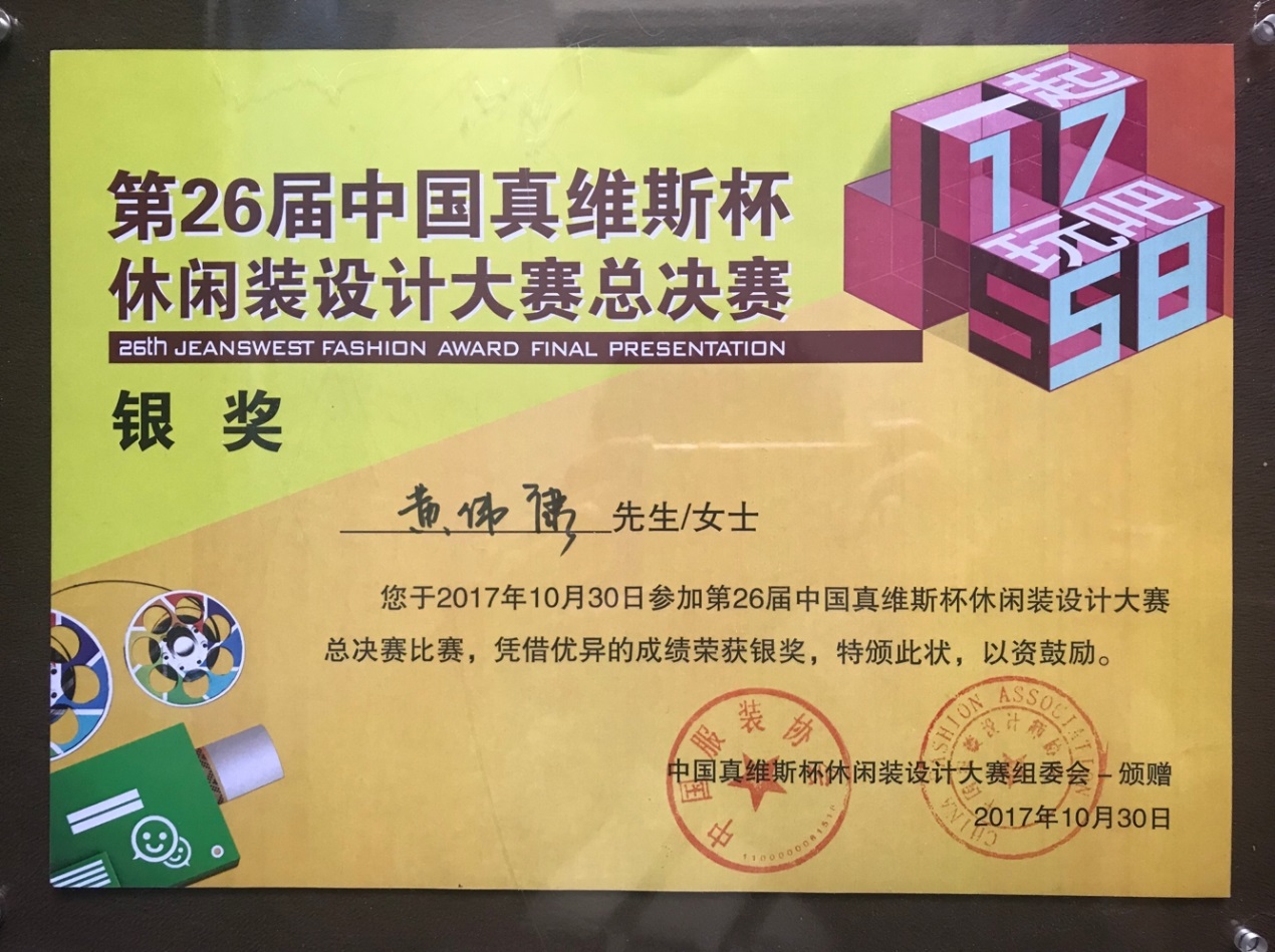 在中国国际时装周期间,“第26届中国真维斯杯休闲装设计大赛总决赛” 于10月30日在北京751D·PARK第一车间如期举行。我校艺术学院16级艺术设计研究生黄伟康同学凭借作品《TOPIC TIME》一举夺得大赛银奖和网络人气奖两项大奖。在收获大奖的同时,黄伟康同学还获得了丰富的奖金和加入真维斯设计精英会的机会。