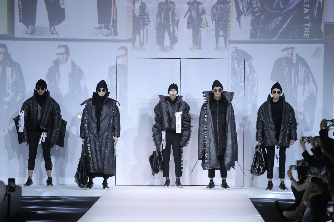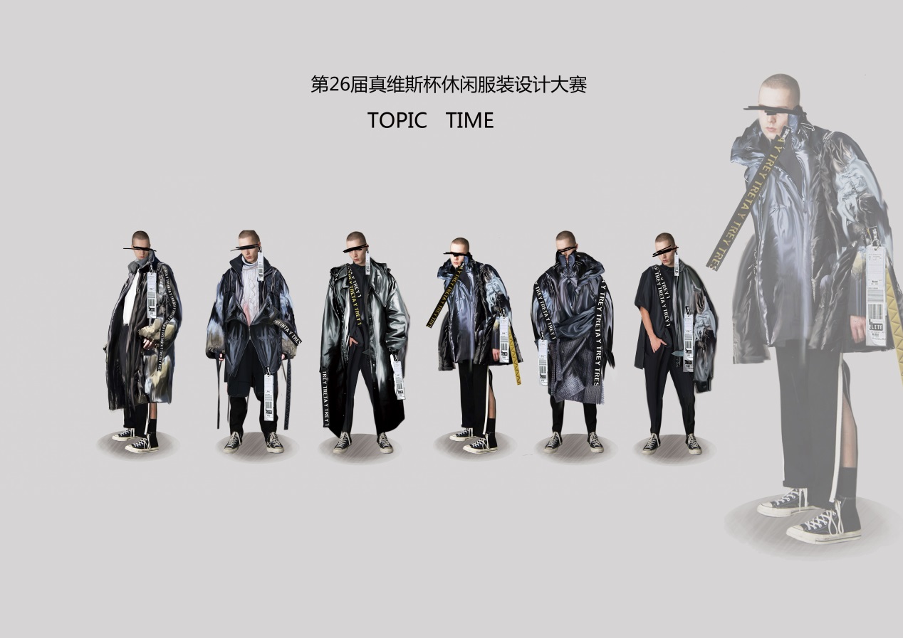 本次大赛从主题征集到截稿,历时将近半年时间,收到来自全国各地一百六十多所院校逾5600份参赛作品。选手们围绕着“1758,一起玩吧”这个主题,聚焦“分享、跨界”,将他们在休闲装上的独到见解从设计到制作,最终在决赛的舞台上完美展现。黄伟康同学的作品《TOPIC TIME》,将平日忽略的服装标签元素融入到休闲服设计之中,运用了新颖的杜邦纸面料,既环保又具备前卫的时尚感,获得评委的一致认可。