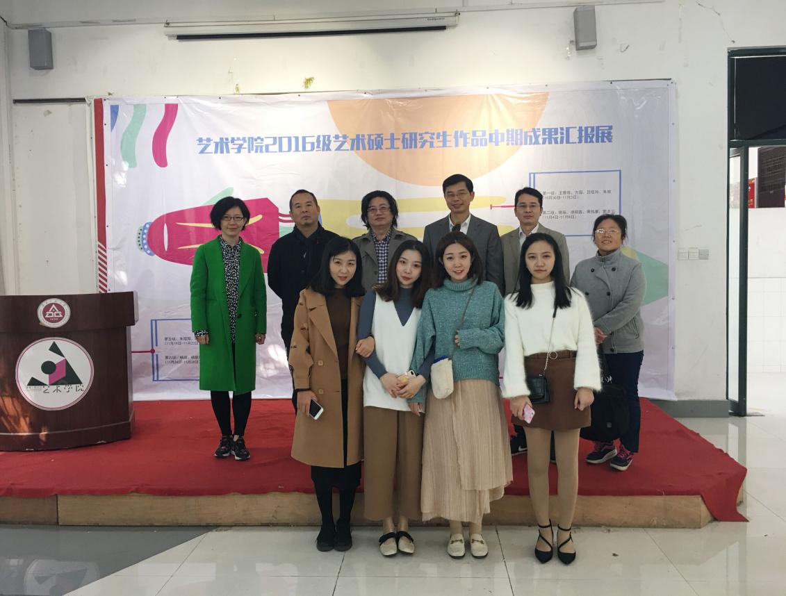 10月30日上午,艺术学院2016级艺术硕士研究生作品中期成果汇报展在学院一楼展厅开展。院党委书记刘金斌,院长黄凯,副院长张学东、承杰,院督导员孟向红,研究生秘书康英和部分研究生等,共同出席了开幕式。
