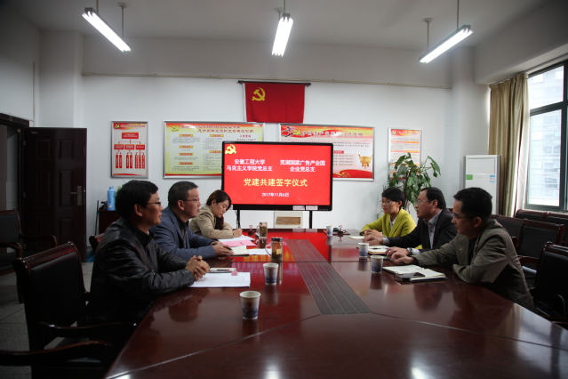 11月6日,马克思主义学院党总支与芜湖国家广告产业园企业党总支结对共建签约仪式在我校举行。芜湖市官陡街道党工委副书记陈庆宏,芜湖国家广告产业园企业党总支书记徐道忠、副书记桂丽娟,马克思主义学院党总支书记王勇智以及学院全体党总支委员参加签约仪式。仪式由王勇智主持。