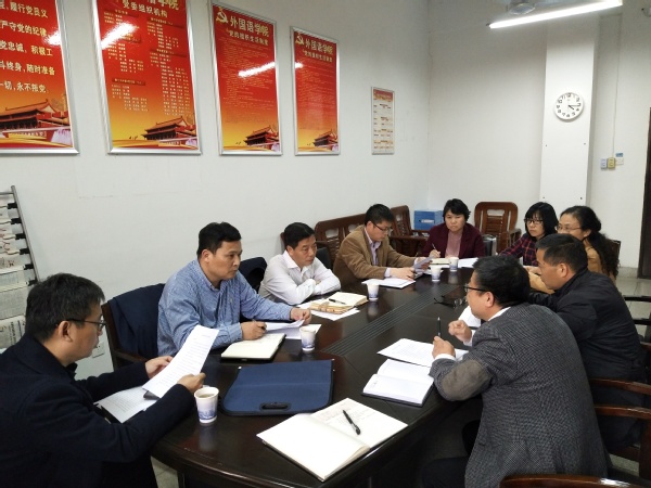 院党委书记魏长顺代表学院感谢校领导和学校职能部门对外国语学院的关心与扶持。副院长黄焰结从本科教学、学科与科研以及人才工作等三个方面做了详细汇报,分别就大学英语教学改革、外语专业教学班级规模、新专业申报、日语专业实践教学、教学设备更新改造、翻译硕士点建设、翻译成果认定以及人才引进等工作中存在的困难和问题提出了意见和建议。唐雪梅博士介绍了语言认知脑电实验室建设进展情况和团队建设情况,并就德语专业的申报工作做了汇报。