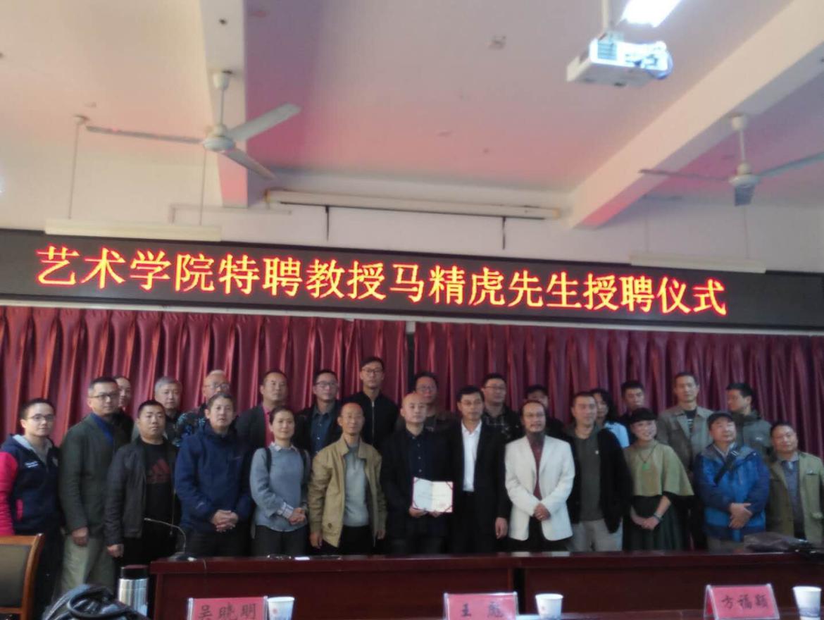 11月10日上午,艺术学院在三楼会议室举行了特聘教授马精虎聘任仪式。艺术学院党委书记刘金斌、副院长承杰,芜湖市美术家协会主席王彪、皖西学院艺术学院院长方福颖、巢湖学院艺术学院副院长李勇、池州学院艺术学院副院长魏鸿飞、芜湖市美术家协会秘书长书画院副院长吴晓明、芜湖市美术家协会副主席鲁世萍、芜湖市美术家协会油画艺委会主任喻晓等出席仪式,学院师生代表200余人参加仪式。会议由承杰主持。
