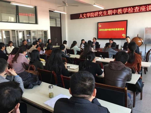 为进一步提升研究生教学质量和水平,11月12日上午,人文学院召开研究生期中教学检查座谈会。座谈会由院长刘军主持,学院党委书记邓英扣、导师代表、研究生辅导员以及人文学院全体研究生参加了座谈会。