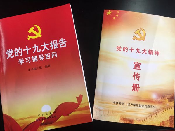 后勤党总支加大学习宣传力度,购买了《党的十九大报告学习辅导百问》,自行制作了《党的十九大精神宣传册》,将十九大精神传达到每一位党员职工。