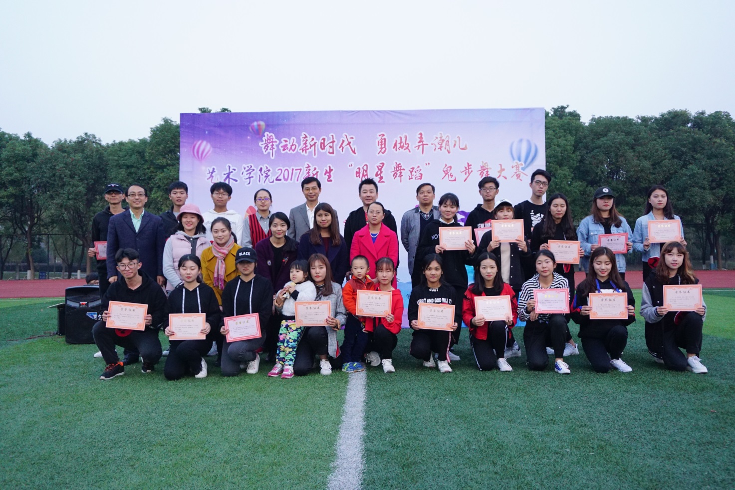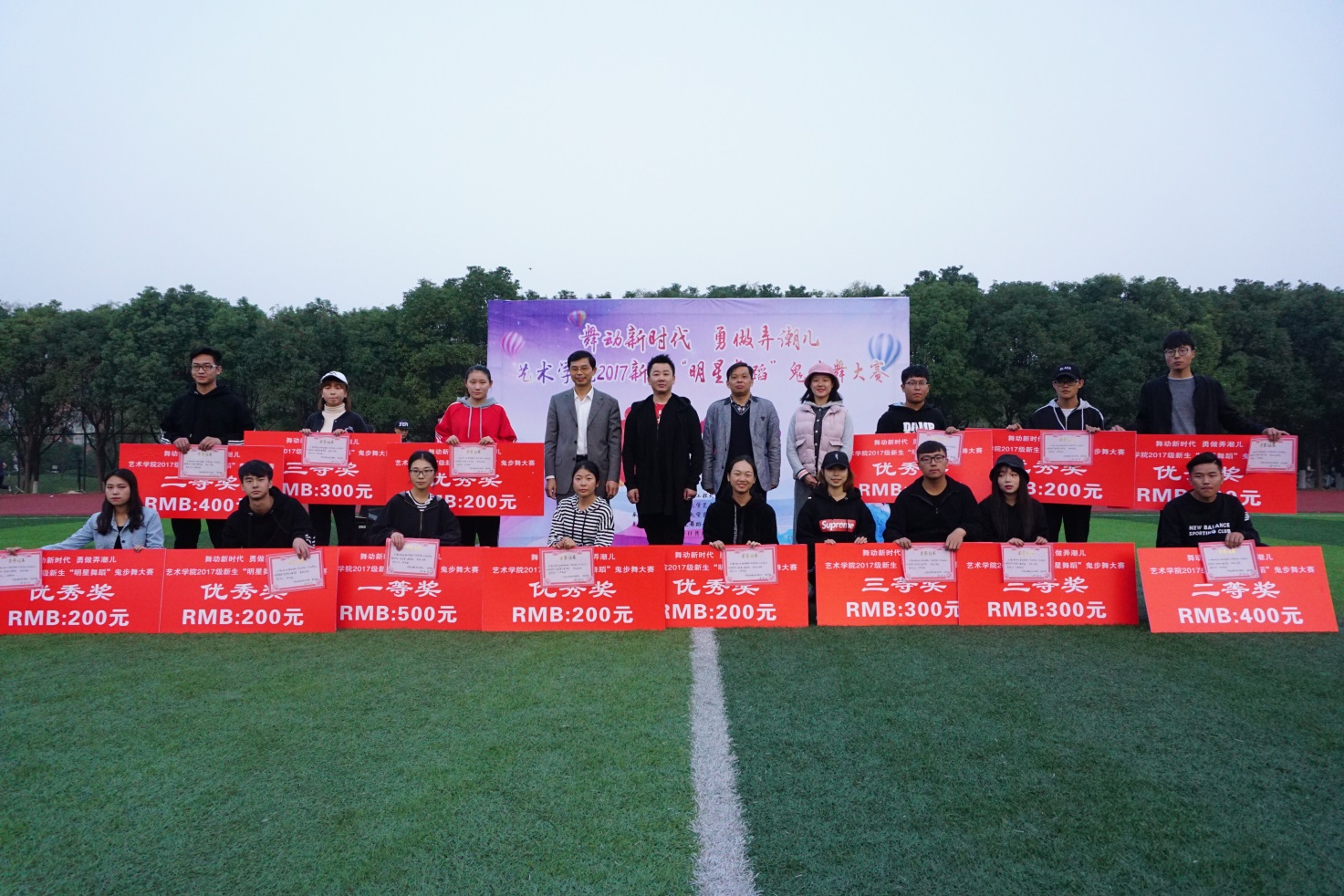 为深入学习贯彻党的十九大精神,增强2017级新生班级凝聚力,营造高雅的艺术氛围,11月15日下午,由校团委主办、艺术学院承办的艺术学院2017新生“明星舞蹈”鬼步舞大赛在学校2号运动场隆重举行。本次大赛得到了香港(芜湖)明星艺术学校的鼎力支持,不仅为同学们发放了舞蹈学习免费体验券,而且为个人赛获得者提供现金奖金。世界舞蹈教师联合会(WDTA)创始会长、香港明星艺术学校校长、世界著名舞蹈教练黄强受邀作为嘉宾莅临比赛,校团委书记冉昆玉、院党委书记刘金斌、院党委副书记任家钱、院团委书记迟传德等观看了比赛,体育学院陈智老师和艺术学院辅导员祝军、张翠、滕敏、倪艳、李娅、叶杨等担任比赛评委。
