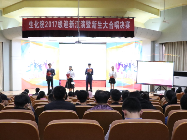 11月19日下午,生化学院在学术报告厅成功举办“凝心聚力十九大,唱响青春主旋律”新生大合唱决赛暨迎新汇演。生化学院党委副书记王辉应邀观看比赛,校团委陈希、学院团委书记胡云、辅导员彭经伟和尹鸾担任比赛评委。