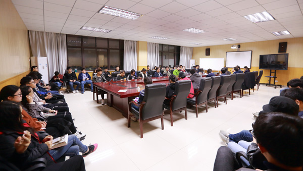 座谈会上,林启达介绍了我校首批2015级金融工程(中外合作)学生在美国底特律大学学习生活状况,他认为,中外合作办学是同学们出国深造的绿色通道,有利于提升专业学习和英语水平,有利于同学们开阔国际视野。他表示,底特律大学亚洲区国际处十分重视与我校的合作办学,愿尽最大努力推进此合作项目的顺利进行,愿为异国深造的学生提供最周到的贴心服务。会上,林启达、金成星、杨会成等就同学们提出的外语学习、专业发展前景、食宿安排、医疗保险、课程的衔接、学分问题、跨专业申请学位、生活保障等诸多问题与大家进行了充分的交流与沟通,消除了同学们的疑虑。