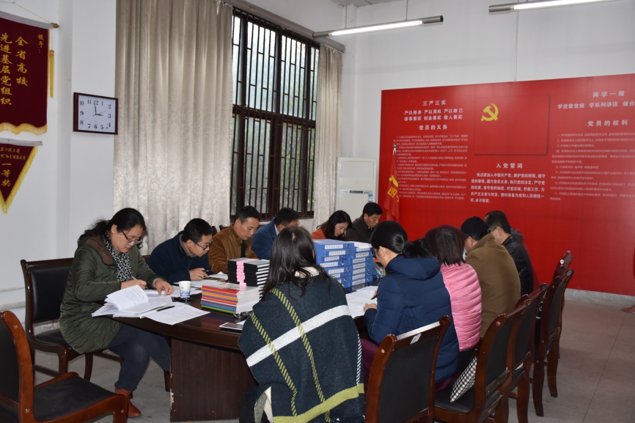 为了开好本次会议,会前总支及各支部对照基层党组织标准化建设工作台账设定的具体标准,归纳收集材料,摆放在图书馆会议室供与会人员审阅,同时在上次中心组学习会上全文学习了十九大报告的第十三部分——“坚定不移全面从严治党,不断提高党的执政能力和领导水平”。