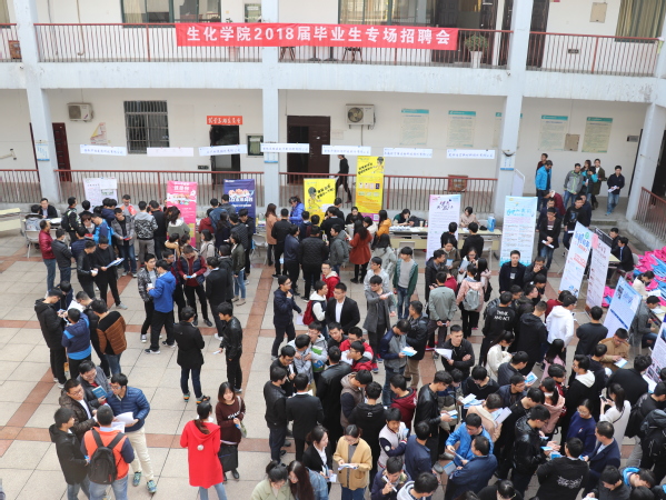 11月22日下午1:00,在校就业指导中心的协助和支持下,生化学院成功举办了2018届毕业生专场招聘会。共计有29家企业来校招聘,提供了300余个专业对口的职位,吸引了约450余名毕业生前来应聘。