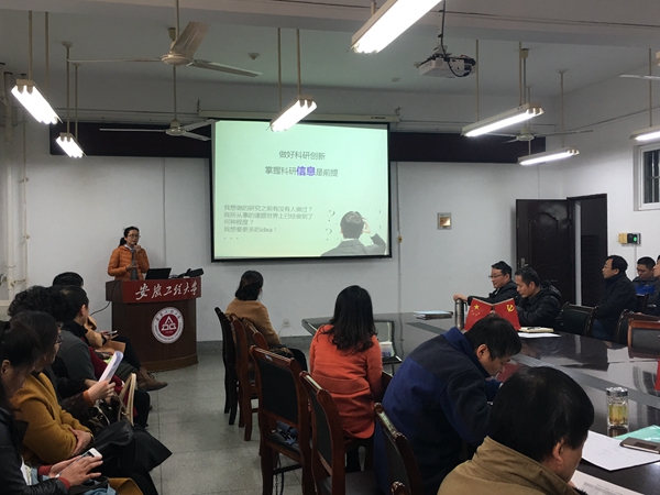 11月22下午,图书馆在机械与汽车工程学院会议室为教师们举办了“利用Web of Science进行创新性科学研究”的主题讲座。主讲人是中国科技大学图书馆信息咨询部主任樊亚芳。此次培训旨在提高教师们利用Web of Science数据库,获取全方位信息和开展创新性研究的能力,以及如何寻找合适的投稿期刊,提高成功率。