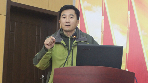 刘聪从十九大盛况、十九大报告的基本内容、十九大精神的重点内容和学习十九大精神的要求四个方面进行宣讲。首先,他从党的一大开始,回顾了历次党的代表大会的历史背景和重大意义与以习近平同志为核心的党中央五年来的工作和历史性变革。阐述了党的十九大是在全面建成小康社会决胜阶段、中国特色社会主义进入新时代的关键时期召开的一次十分重要的大会,是一次不忘初心、牢记使命、高举旗帜、团结奋进的大会。他强调习近平同志代表十八届中央委员会向大会作的报告,旗帜鲜明、主题突出,内涵丰富、博大精深,思想深刻、大气磅礴,是一个解放思想、实事求是、与时俱进的好报告,是一个凝聚全党智慧、顺应人民期待、对我国发展具有重大指导作用的好报告,是一篇光辉的马克思主义纲领性文献。他传达了校党委对学习宣传贯彻落实党的十九大精神的工作要求:要深刻认识党的十九大的重大政治意义、理论意义和实践意义,认真学习贯彻党的十九大精神,认真学习贯彻习近平新时代中国特色社会主义思想,切实把思想和行动统一到党的十九大精神上来,牢固树立“四个意识”,切实做到“四个看齐”,不断坚定“四个自信”,坚决维护和捍卫习近平总书记的核心地位,坚决维护党中央权威和集中统一领导,坚决贯彻党中央的重大决策部署,始终在思想上政治上行动上同以习近平同志为核心的党中央保持高度一致。最后,他以根本动力:不忘初心,牢记使命;前进方向:高举中国特色社会主义伟大旗帜;奋斗目标:决胜全面建成小康社会;宏伟目标:夺取新时代中国特色社会主义伟大胜利四个方面的分析概括,加深了师生对十九大主题的认识理解。