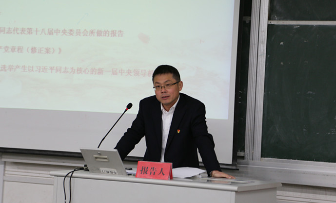 周晓宏联系学校的人才工作和我院师资队伍建设实际,从党的十九大的主题、主要成果;习近平新时代中国特色社会主义思想;过去五年的历史性成就和历史性变革;中国特色社会主义进入新时代;新时代中国特色社会主义的新部署;新时代中国特色社会主义党的建设的新要求等六个方面对十九大报告精神进行了全面阐释。