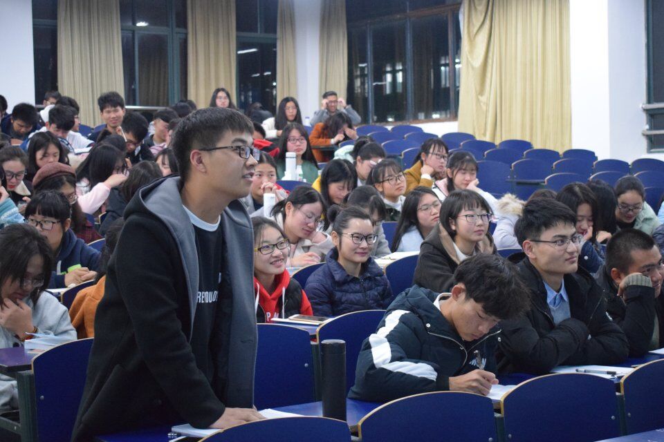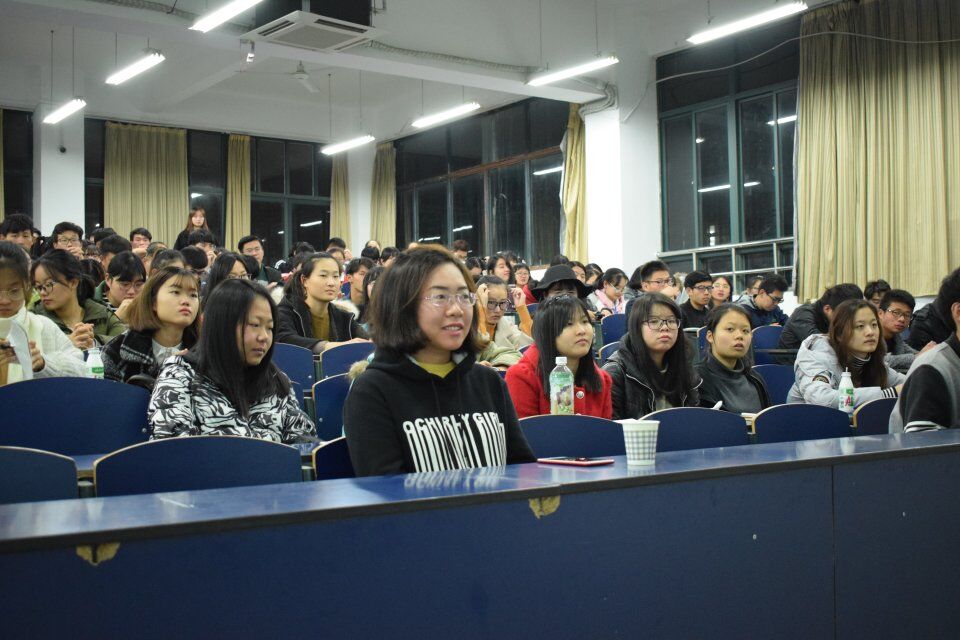 交流会邀请学院在四六级考试中取得优异成绩的刘郑、储华琼、胡思琪、周欣、王亚飞五位学长学姐,依次和学弟学妹们分享考试经验。他们分析了英语四六级考试的特点,从试卷的分值结构入手,强调了听力和作文的重要性,传授了不同题型的考试技巧和临场经验,提醒同学们注意考试要点及考场中的各个细节,鼓励同学们以良好的心态去面对四六级考试。在座的同学们虚心学习,认真做笔记,提问环节更是积极提问,针对同学们的疑惑学长学姐们一一进行了认真详细的解答。