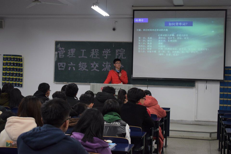 为了迎接即将到来的四六级考试,管理工程学院分别于11月22、23和26日在5教217举办了四六级交流会,为提高学习交流的效率,将大一新生按专业分批次进行学习交流,辅导员赵妍老师、吴梦琦老师参加交流会。