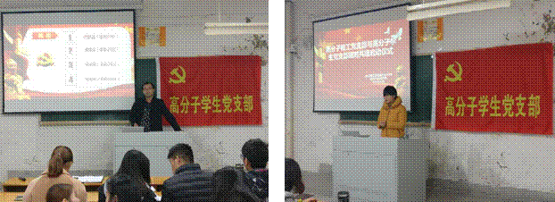 为落实《中国共产党普通高等学校基层党组织工作条例》的有关精神,为加强基层党支部之间的沟通交流、增强基层党支部活力、创新支部建设活动方式,在学院党委的指导和安排下,11月29日下午在4教105教室,生物与化学工程学院高分子教工党支部和高分子学生党支部举行支部共建启动仪式并一起开展了十九大主题相关的党员活动日活动。
