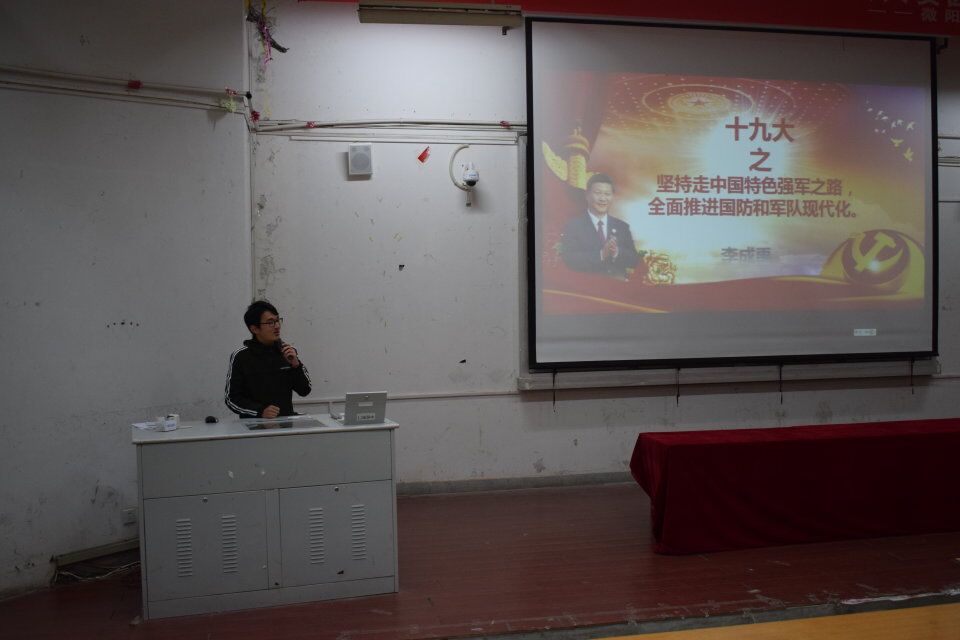 开班仪式上,学生代表朱颖莉进行了发言,培训班班长宣读了管理办法。随后该院四位参加校十九大“微宣讲”获奖的同学进行了展示报告,学院高年级团支书、班长也到场聆听。校学生会杨维同学以“走进十九大”为主题,提出青年学生要把十九大精神落到实处;新生教官张玉涵结合自己的军旅经历以“不忘初心,牢记使命,奋力走好新时代的长征路”为主题进行宣讲;理论协会会长李成禹讲到“十九大之坚持走中国特色强军之路,全面推进国防和军队现代化”,他将十九大报告形象的比喻成喝咖啡,十九大报告言简意赅,意蕴深厚,细细品读,每次都会有新的收获;营销172团支书王旭进行了“不忘初心,方得始终”的宣讲。
