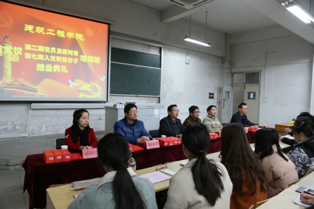 11月30日下午,建筑工程学院分党校第七期入党积极分子培训班暨第二期学生党员发展对象培训班结业典礼在2教107教室举行。建筑工程学院党委书记徐达奇、副书记李烨、院团委书记刘海涛、各学生党支部书记出席典礼。典礼由本期培训班班主任苏伟刚主持。