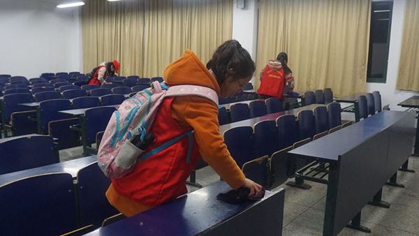 为了尽早恢复艺术类考试教室的整洁,还同学们一个美观、舒适的学习环境。12月3日艺考结束后计算机与信息学院志愿者在五教开展了清扫考场活动。