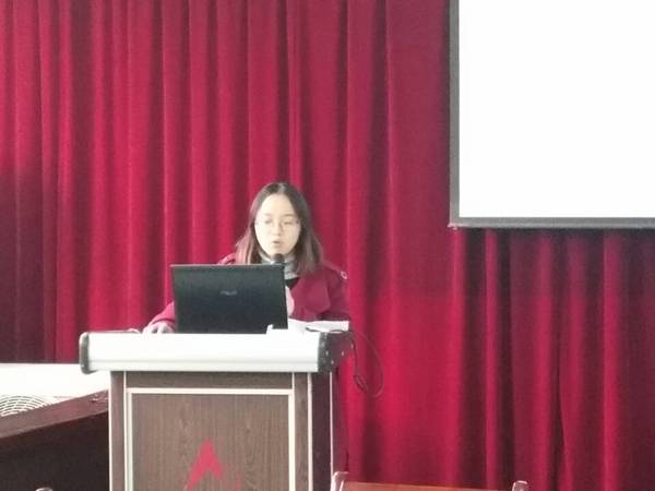 於涵首先对任务型教学法的理论基础、课堂实践、教学成果、操作要点等方面做了系统介绍,强调了在英语教学中“全人教育”理念的重要性,运用案例法深度解读了任务型教学理念和课堂设计,展示了如何在实践教学中运用任务型教学理念及具体的实际操作过程;并结合自己多年的教学经验和大家分享了近期赴广东外语外贸大学参加综合英语公开课的收获和体会,通过介绍了广外的品牌活动学生课外poster路演和英语作文朗读大赛,使教师们体会到了任务型教学法对学生语言实践能力和综合素养提升的实际成果。
