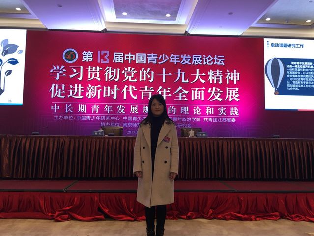 12月6至7日,由共青团中央批准,中国青少年研究中心、中国青少年研究会、中国青年政治学院、共青团江苏省委联合主办的第十三届中国青少年发展论坛在南京举行。本期论坛主题为“学习贯彻党的十九大精神促进新时代青年全面发展——中长期青年发展规划的理论和实践”。共青团中央书记处书记尹冬梅、共青团中央青年发展部部长杨松、北京外国语大学党委书记韩震、中国青年政治学院副院长陆玉林等专家针对议题分别作了大会主题报告。我校马克思主义学院副教授孙丽芳应邀参会。