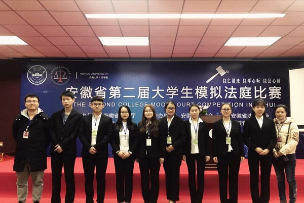 12月9日至10日,由省教育厅主办,省法学会、省法官协会、省检察官协会、省律师协会协办,安徽大学承办的安徽省第二届大学生模拟法庭比赛,在安徽大学法学院举行。来自全省兄弟院校共19支参赛队伍受邀参加本次比赛,我校派出了由教师鲍雨和邓琼担任领队,由8名同学组成的校代表队参赛。法学系主任杜蓓蕾应邀作为本次模拟法庭比赛教师评委全程参与比赛。