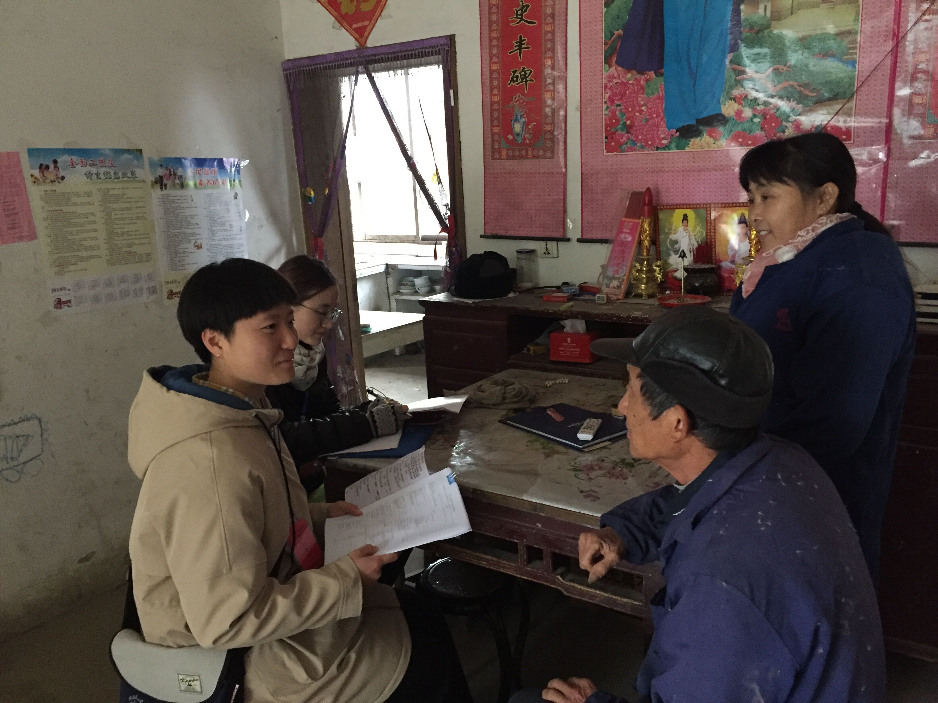 在各镇、村扶贫人员的陪伴下,同学们两人一组,实地入户访谈,全面核实拟脱贫户是否达到脱贫标准,对已脱贫户和未脱贫户以及一般户进行了数据采集,带队领导和专家对东至县扶贫工作进行了核查。每天的工作中,同学们早出晚归,白天实地考察,晚上审核录入数据,虽然存在山区路途遥远、颠簸,语言沟通困难等问题,但同学们不惧困难,严格客观公正的完成自己的任务。访谈过程中,进门一句“大爷、大妈好”,让他们迅速进入角色,每一项数据都仔细的核实,摸摸他们身上的衣服、被子,看看他们是否保暖;看看他们的厨房,有没有吃的不愁;在没有自来水的农户家中,同学们自己从井里把水拎出来,查看水源水质情况。“习近平总书记特别关心扶贫,关心困难群众,在今年的十九大上,习近平总书记又对扶贫提出新要求,到2020年全国要一户不落地进入小康社会……”从一开始有点机械的背诵,到后来牢记在心,信手拈来,同学们用自己的语言拉近了与群众的感情,也把习近平总书记对群众的关心传达到了每一位农户家中。