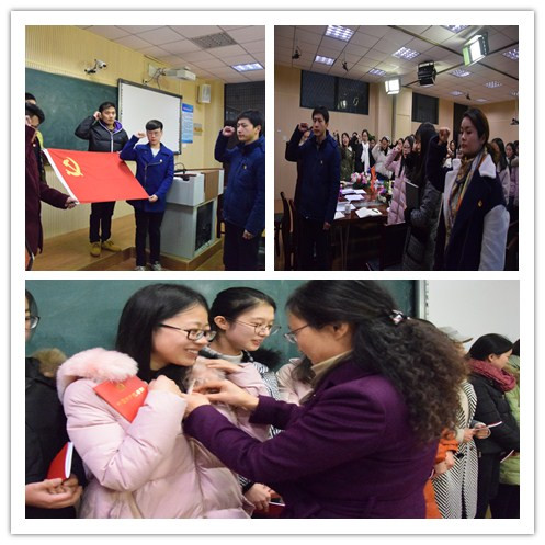 12月27日下午,外国语学院学生党支部于9教104教室召开了庄严而隆重的新党员入党宣誓大会。支部全体党员和14名新党员参加了会议。会议由支委王钰主持。
