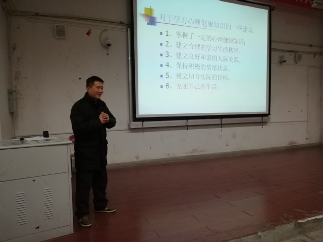 12月20日下午,邀请学生处学生教育管理科科长、心理咨询老师杜松涛为全体大一新生作“坚忍不拔:大学生的挫折应对”专题讲座。杜松涛结合真实案例,为同学们讲解什么是挫折、分许引发挫折的主要因素和大学生挫折的主要特点,告诉同学怎样应对挫折。提出要辩证的看待挫折面对困苦,接受它,但不要自我放弃,要借机培养自己的品性,锻炼自己的意志,提升自己的能力,为将来的机会做准备。最后,杜松涛为同学们提了几点建议:同学们应掌握一定的心理健康知识;建立合理的学习生活秩序;建立良好和谐的人际关系;持积极的情绪状态;树立切合实际的目标;充实自己的生活。讲座在热烈的掌声中圆满结束。