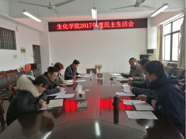 根据学校党委统一部署,按照《关于认真开好2017年度学校处级党员领导干部民主生活会的通知》和《关于认真撰写民主生活会班子对照检查材料和个人发言提纲等事项的通知》要求,生化学院领导班子在经过认真学习和充分准备的基础上,于2017年1月26日上午在学院会议室召开2017年度处级党员领导干部民主生活会。